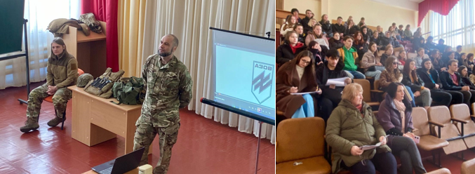 Захід проходив у форматі бесіди, студентам була продемонстрована презентація та відео матеріали про діяльність Полку Азов: воєнні хроніки, відбір воїнів до Азову тощо.
