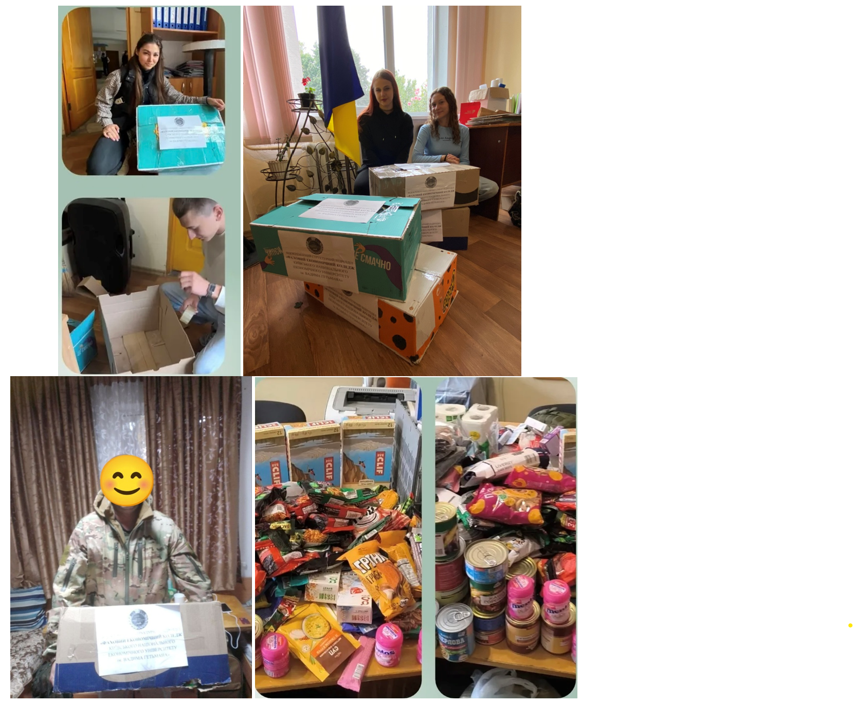 Студенти груп 2Ф-61, 2КМ-64, 3МД-56, 1КМД-72, 2КП-59, 2КМД-63, 1Ф-69, 1ЛО-68, 2ЛО-66, 3КФМ-53, 1Т-74, 3КМ-55 організували масштабний збір актуальних речей, медикаментів, оберегів, листівок з побажаннями  для наших захисників з 57 бригади (Харківський напрямок), 117 бригади (Донецький напрямок), 30 ОМБР (Куп’янський напрямок).