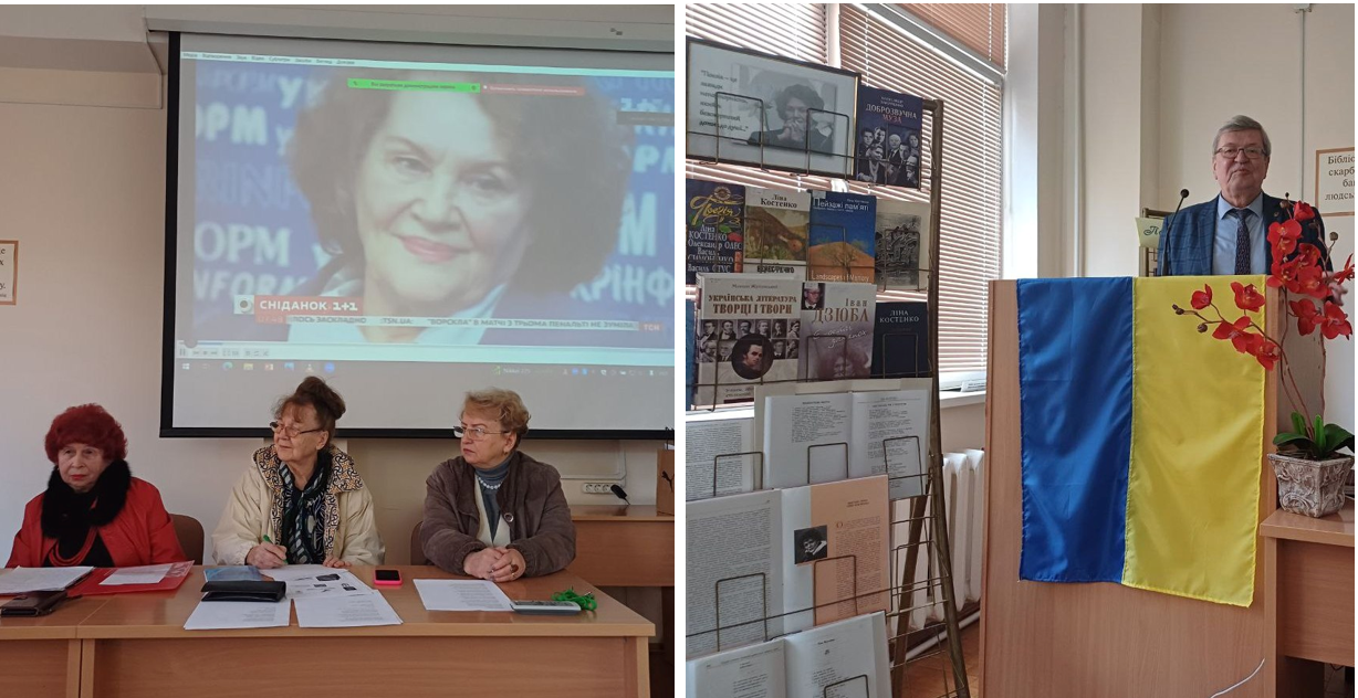 Перша частина заходу була присвячена королеві української поезії – Ліні Костенко. Модераторка заходу Людмила Воробйова зупинилась на цікавих фактах із біографії поетеси, а також звернула увагу присутніх на святкування ювілею письменниці у місті Києві та на заходи, які ще плануються з нагоди її ювілейного року.