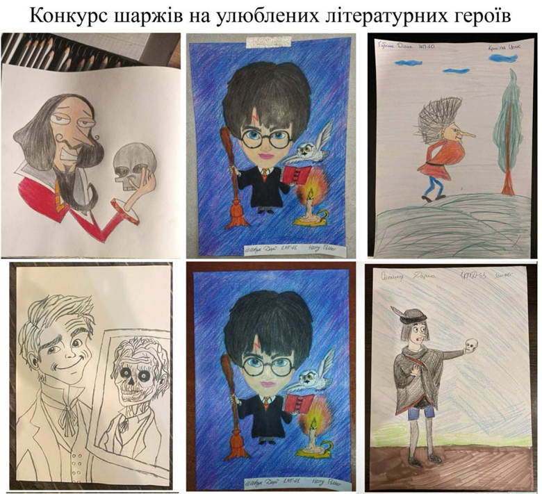Серед здобувачів освіти 1 курсу  в рамках тижня комісії Валентиною МИГОЛЬ проведений конкурс шаржів на улюблених літературних героїв.