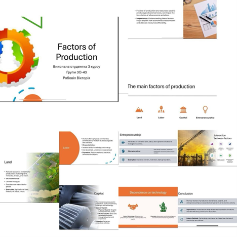 Проєкти за професійним спрямуванням «Factors of Production» (презентації) (Фактори виробництва); «What are the human rights, and why are they important?» (Що таке права людини і чому вони важливі?)