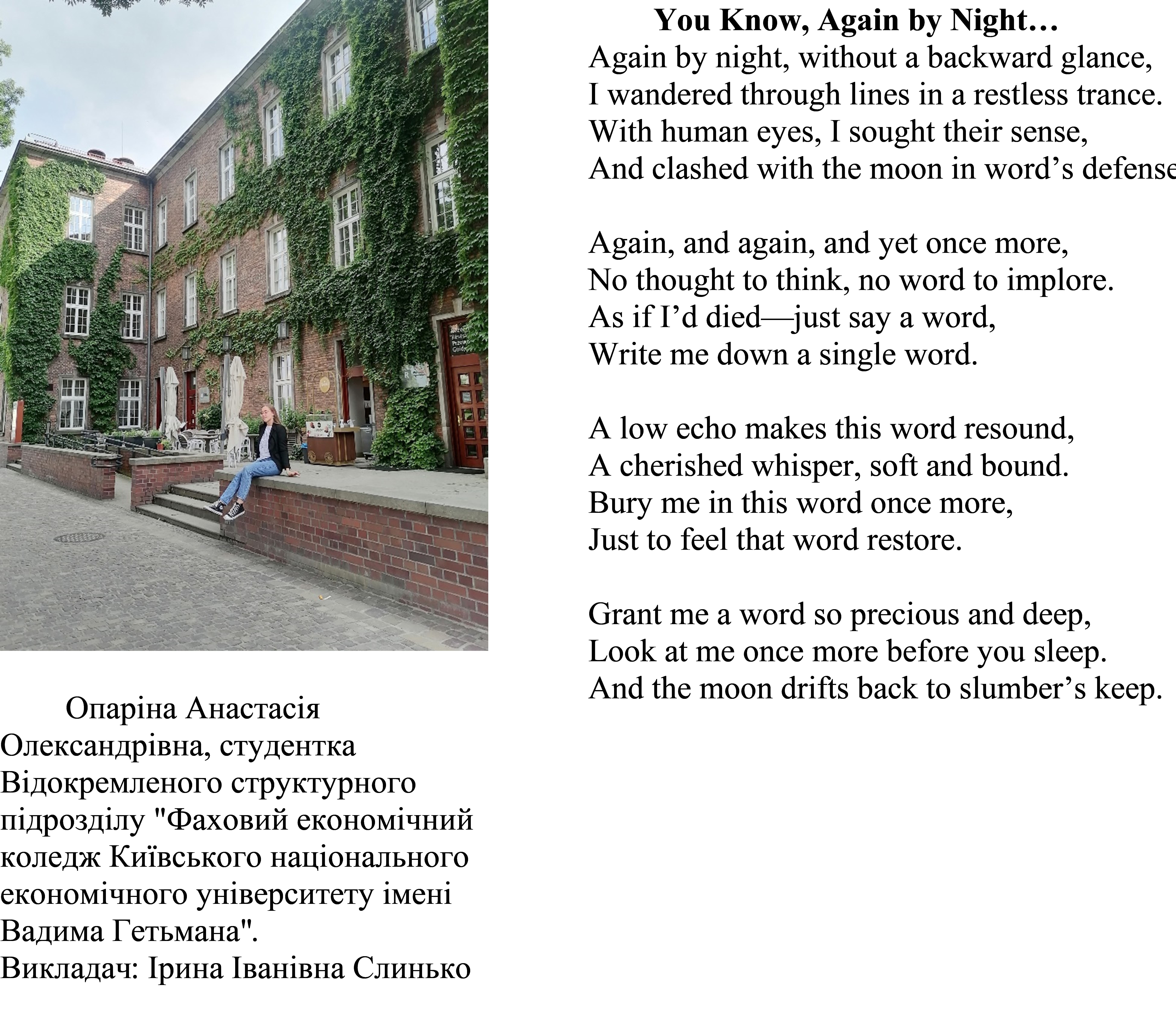 Студент Відокремленого структурного підрозділу "Фаховий економічний коледж Київського національного економічного університету імені Вадима Гетьмана", викладач: Слинько Ірина Іванівна