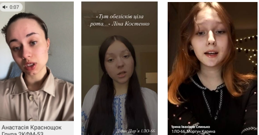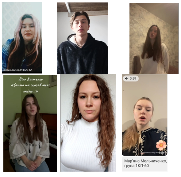 Вірші читали такі студенти: Анастасія Краснощок, Марія Гаращенко, Артем Виговський, Карина Моргун, Ксенія Борзак, Валерія Бендик, Марія Деркач, Дарія Селюніна, Софія Залюбівська, Дарія Рябенко, Маргарита Пархоменко, Дар’я Дідик, Мар’яна Мельниченко, Карина Грицай