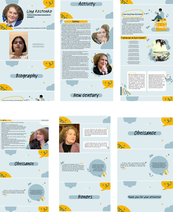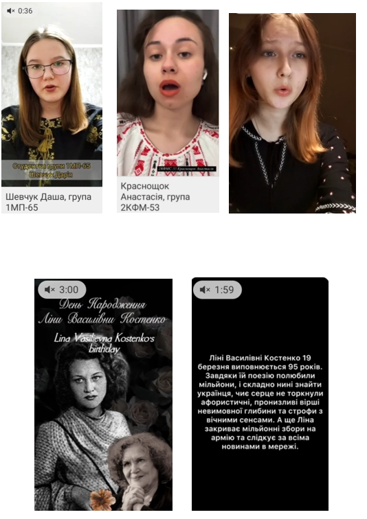 Студенти нашого коледжу в рамках Тижня створюють відеоролики на основі читання поезій відомої майстрині слова Ліни Василівни Костенко, якій 19 березня виповнюється 95 років. На заняттях з літератури та мови викладачі коледжу часто наводять рядочки своїх улюблених віршів Ліни Василівни, спонукаючи молодь вчитися міркувати, відстоювати свою позицію, вивчати і шанувати історію країни, бачити навколо себе красу, відчувати і дарувати любов, задумуватися над філософськими питаннями життя…