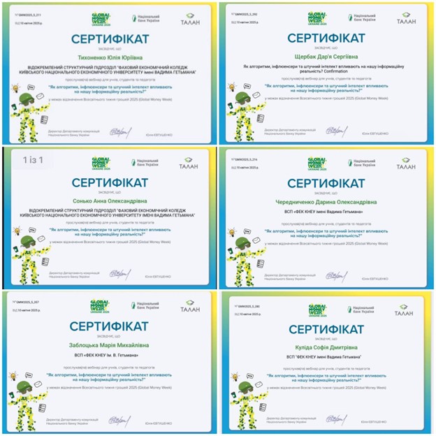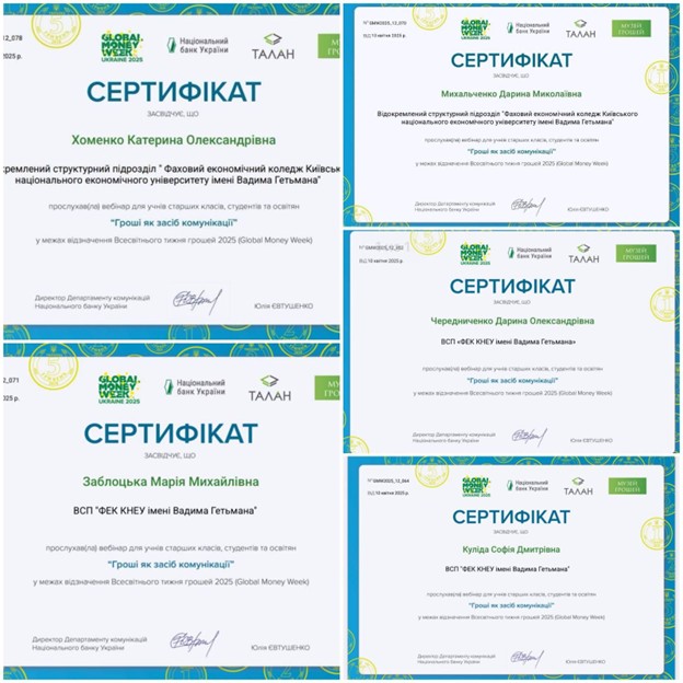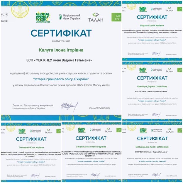 В рамках Всесвітнього тижня грошей 2025 (англ. Global Money Week 2025) здобувачі освіти ВСП «ФЕК КНЕУ ім. Вадима Гетьмана» із 17 березня по 20 березня 2025 року приймали участь у заходах, які проводились Національним банком України спільно з партнерами.