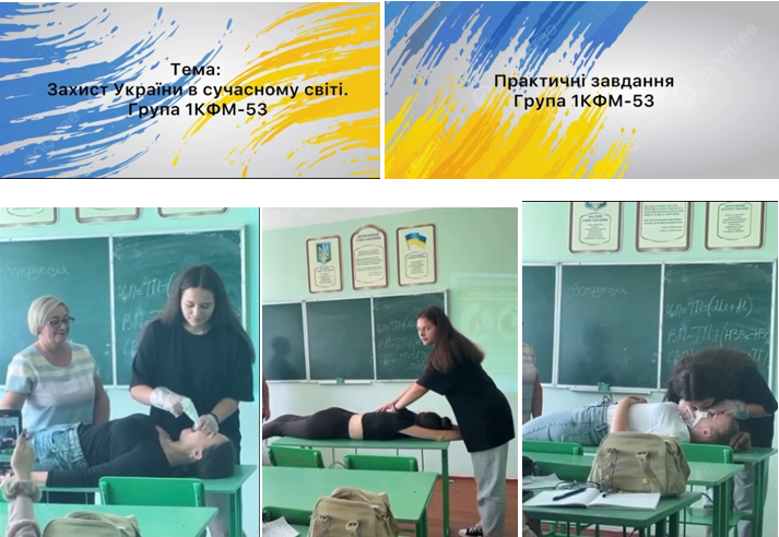 В контексті теми: «Захист України в сучасному світі» студенти групи 1КФМ-53 під керівництвом викладача Захисту України Гогулі Ж.В. продемонстрували свої навички надання першої допомоги.