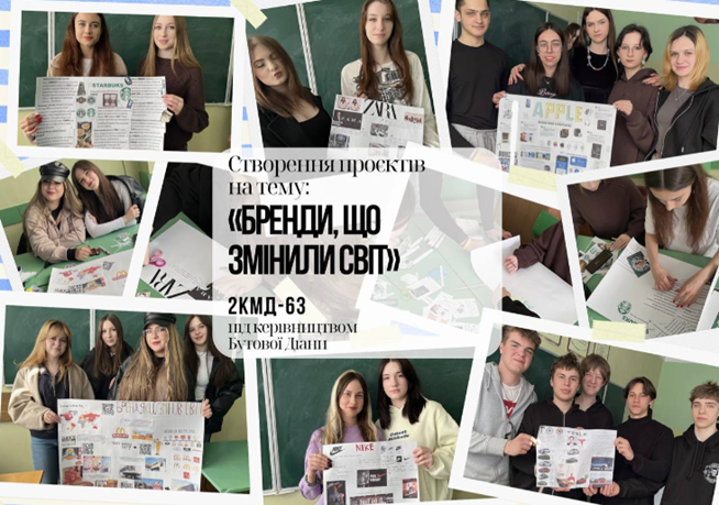 06.04.2026 року в рамках тижня Маркетингу здобувачі освіти ІІ курсу групи 2КМД-63 спеціальності 075 «Маркетинг», освітньо-професійної програми «Маркетинг» під керівництвом викладачки Бутової Д.В. організували та провели тематичний захід «Бренди, що змінили світ».