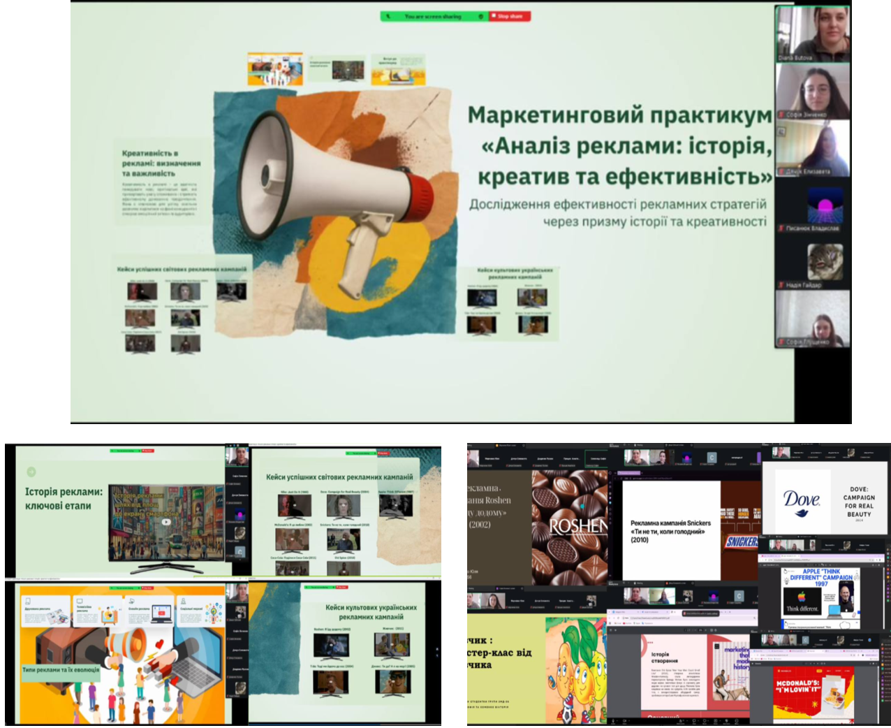 Під час заняття студенти ознайомилися з історією розвитку реклами, переглянули культові рекламні ролики світових та українських брендів, а також проаналізували ключові чинники їх успіху — креативні ідеї, емоційний вплив, цільову аудиторію та ефективність подачі.